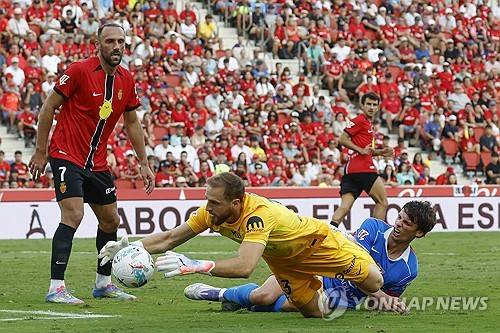 epa12396256 Atletico Madrid's goalkeeper Jan Oblak (C) catches the ball next to Real Mallorca's Vedat Muriqi (L) during the LaLiga soccer match between Real Mallorca and Atletico Madrid, in Palma, Balearics, Spain, 21 September 2025. EPA/CATI CLADERA