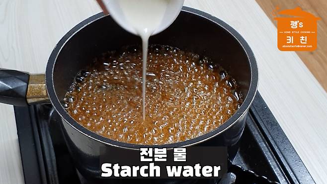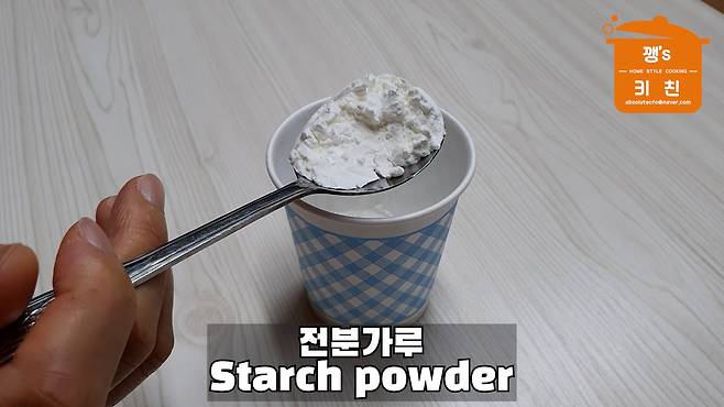 전분가루 1큰술 반, 물 2큰술을 섞어