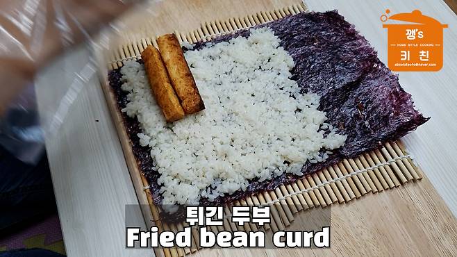 밥, 두부, 고추, 김, 마요네즈, 식용유, 참기름, 소금, 대파 & 양파, 올리고당, 맛술, 설탕, 간장, 전분가루