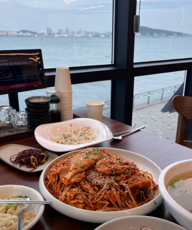 유리창 너머로 바다가 펼쳐진 공간에서 먹는 해물찜은 그야말로 꿀맛입니다.