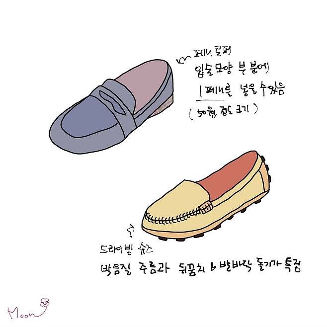 2가지 모두 봄과 가을에 편하게 신기 좋은 로퍼인데 2가지가 디자인이 다르지만 요즘은 디자인이 묘하게 섞어 나오기도 하니 이런 류의 비슷한 신발들을 통칭해 로퍼라 부르면 된다.