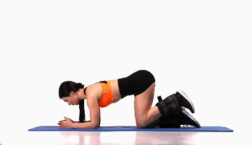 매트 위에서 네발기기 자세로 엎드린 뒤, 팔꿈치를 구부려 팔뚝으로 상체를 지탱합니다. 왼쪽 다리를 뒤로 곧게 뻗었다가 무릎을 당겨줍니다. 왼쪽 다리로 반복한 후, 오른쪽 다리도 동일한 방식으로 수행합니다.