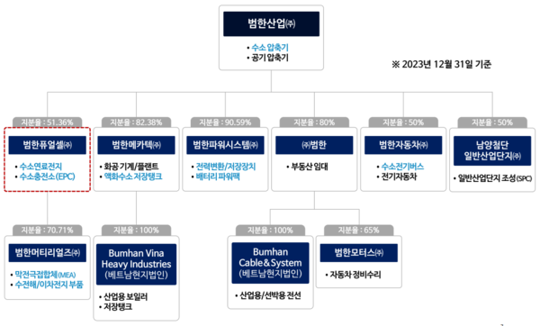 그룹 내 계열사와의 협업도 주목할 만하다. 먼저 모회사인 범한산업으로부터 수소압축기를 공급받으면서 수소충전소 사업의 가격 경쟁력을 확보했다. 수소압축기는 재료비의 약 50%를 차지할 만큼 큰 비중을 차지한다. 지난 2023년 10월 설립한 범한머티리얼즈는 연료전지 생산에 활용되는 핵심부품을 만든다. 자회사를 통해 부품 수급의 안정성을 확보한 셈이다.