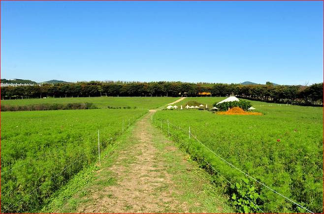 가을에는 분홍빛 코스모스가 바람에 흔들리고, 겨울이면 눈 덮인 초지가 하얀 동화 속 설경처럼 펼쳐집니다.