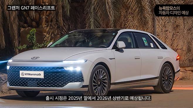그랜저 GN7의 페이스리프트 모델이 2025년 말에서 2026년 상반기 출시를 목표로 개발 중인 것으로 알려졌다. 연식 변경과 함께 아너스트림이 추가되며 본격적인 페이스리프트 전 마지막 상품성 강화가 이루어진 가운데, 그랜저 GN7 페이스리프트의 전측면 예상도가 뉴욕맘모스에 의해 공개돼 주목을 받고 있다.