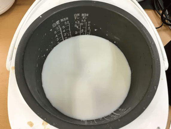 쌀을 충분히 불리고 식초로 냄새까지 제거했다면 이제는 밥을 지을 차례이다. 이때 일반적인 밥 짓기와는 다르게 밥물의 일부를 우유로 대체하는 것이 포인트이다. 정확히는 전체 물양의 3분의 1 정도를 우유로 채워 넣는 것이다. 예를 들어 밥을 짓는 데 1컵의 물이 필요하다면 물 2/3컵, 우유 1/3컵의 비율로 맞추면 된다.