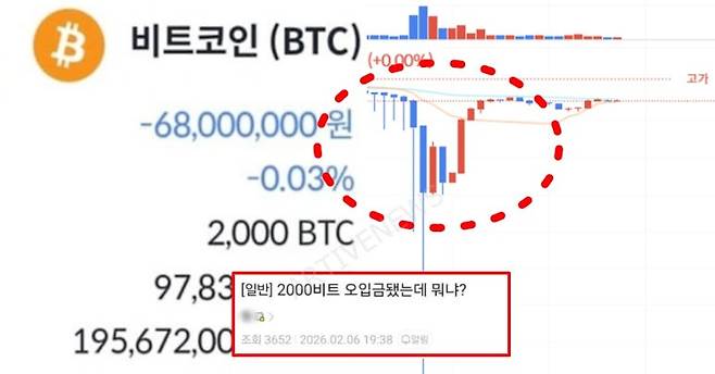 놀라운 점은 해당 오입금을 확인한 일부 이용자들이 이를 회수당하기 전 즉시 시장가로 매도를 단행했다는 사실입니다. 이로 인해 빗썸 내부의 비트코인 시세는 타 거래소(약 9,800만원) 대비 15% 이상 폭락한 8,100만원 선까지 순식간에 곤두박질쳤는데요.