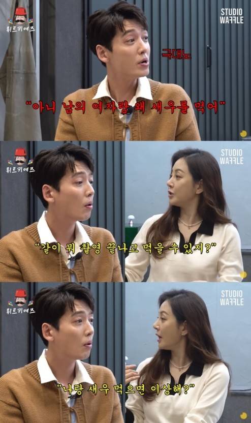 이에 오나라는 "아니 먹을 수는 있지"라고 말했고, 정경호는 "아니 어떻게 먹어"라고 반문했습니다. 그러자 오나라는 "같이 촬영 끝나고 먹을 수 있지. 나랑 새우 먹으면 이상해? 먹을 수 있잖아"라며 "너 누나가 새우 막 못 까는데 안 까줄거야? 까줘야지 XX야"라고 말해 웃음을 줬습니다.