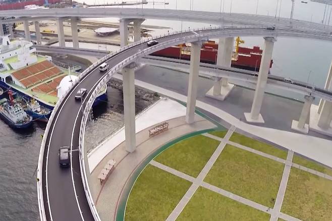 부산항대교 진입로는 2014년 개통되었으며, 교량 아래의 큰 크루즈가 통과할 수 있도록 높게 설계되었습니다. 중앙부 높이는 66m로, 이 도로는 회전형으로 설계되어 경사를 완만하게 조절할 수 있도록 했습니다. 이로 인해 도로가 안전하다는 평가를 받지만, 높은 곳에서의 커브 도로와 바다 전망이 심리적으로 큰 부담을 주는 것입니다.