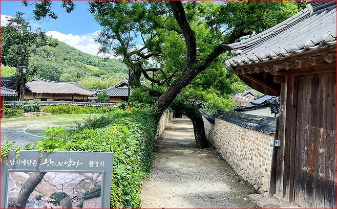 남사예담촌에는 매화 외에도 다양한 볼거리가 있습니다. 이씨고가 입구에는 수령 약 300년의 회화나무 두 그루가 서로 교차하며 자라고 있습니다. 마치 서로를 지탱하듯 자란 모습 때문에 ‘부부 회화나무’라고도 불립니다.