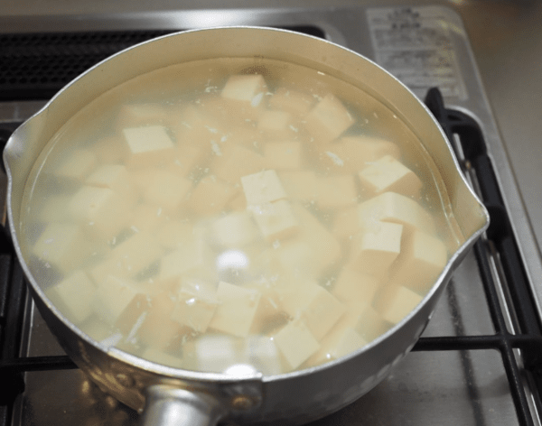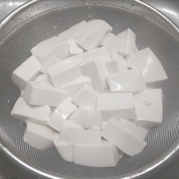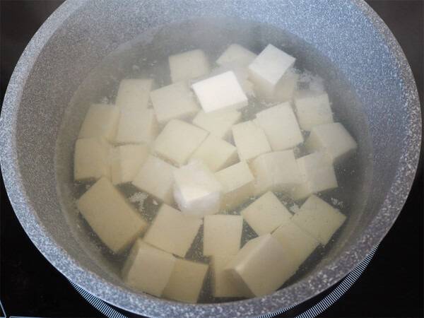 소금물에 데친 두부는 수분이 빠지고 식감이 단단해진다