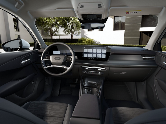 실내는 기본형 Q3와 동일하게 최신 디지털 콕핏 구성을 유지했습니다. 운전석 앞에는 11.9인치 디지털 계기판, 중앙에는 12.8인치 인포테인먼트 화면이 곡선형 패널에 통합되어 배치됐습니다.