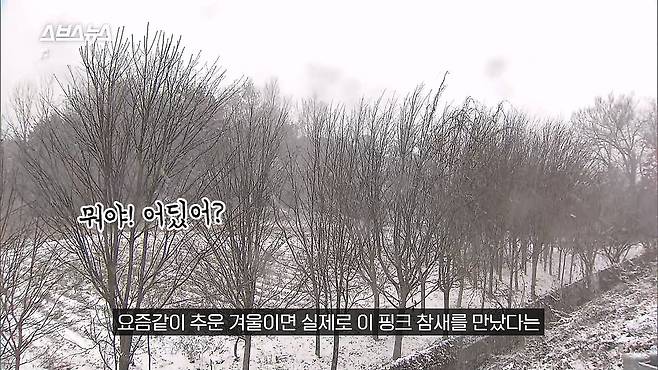 오직 겨울에만 한국에서 볼 수 있다는 전설의 포켓몬(?) 핑크 참새