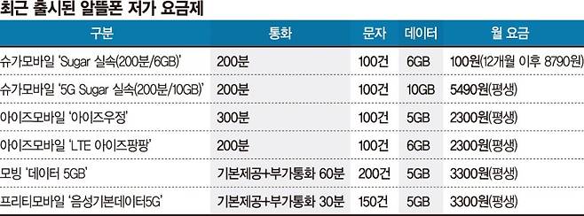 한달 통신비 100원… 다시 뜨는 알뜰폰 ‘가성비 요금제’