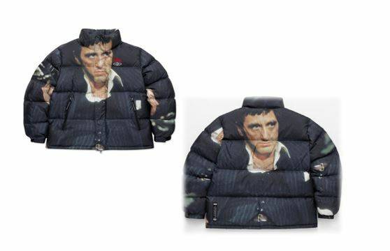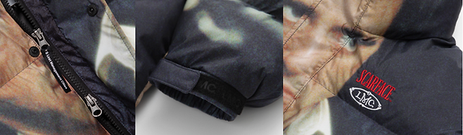 갱스터 영화 스카페이스와 엘엠씨의 콜라보레이션 제품이며 패딩의 전면과 후면에