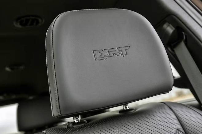 XRT 전용 라디에이터 그릴은 수평 라인의 크롬 가니시와 사각 포인트 장식을 조합해 견고하면서도 정제된 디자인을 구현했으며, 오프로드 전용 범퍼와 블랙 하이그로시 스키드 플레이트가 하단부에 적용되어 험로 주행 중 차량 손상을 방지한다. 휠은 18인치 블랙 알로이 타입으로 마감되었고, 전면에는 레드 컬러 견인 고리가 실제 구조물로 장착되어 오프로드 상황에서의 실질적인 활용이 가능하다. 보조 램프와 점선형 서치라이트도 기본 탑재돼 야간 산악 주행에서도 안정적인 시야 확보를 돕는다.