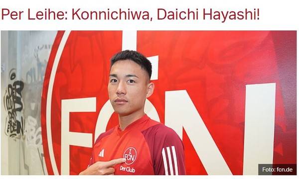 일본 공격수 하야시 다이치가 신트트라위던에서 독일 뉘른베르크로 임대 이적했다.