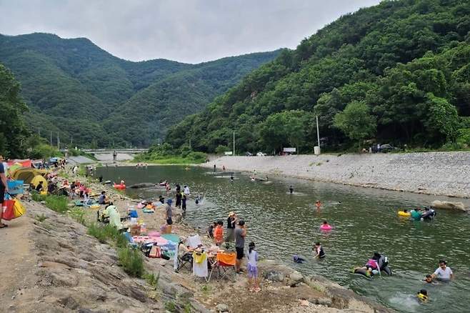 수심이 얕기 때문에 초등학생이 되는 아이들도 안전하게 물놀이를 즐길 수 있으며, 인근에는 글램핑장이 자리 잡고 있어 함께 이용하기에도 좋다.