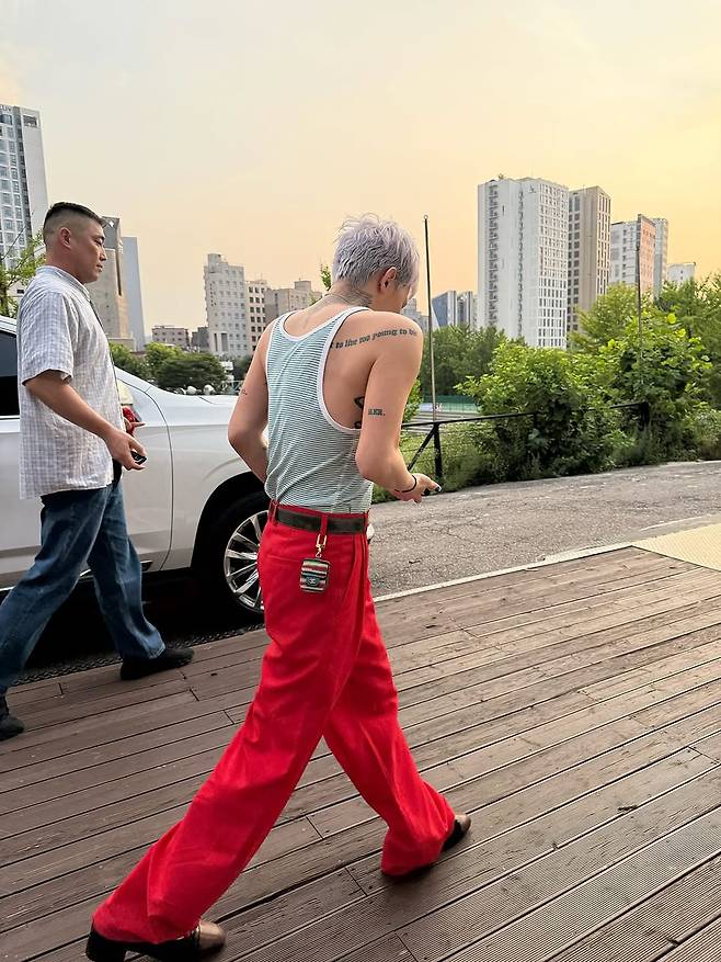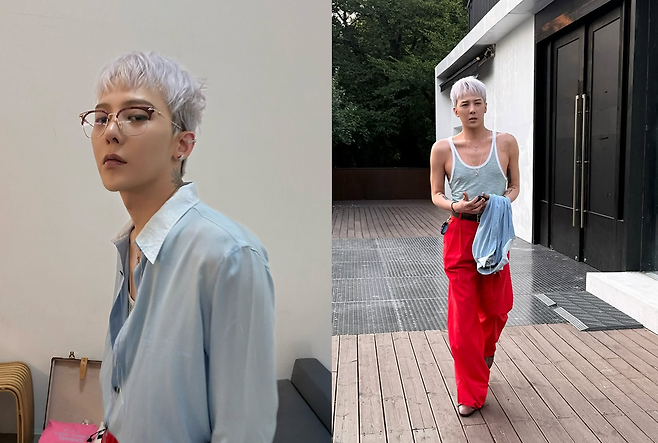 지난 20일 지드래곤은 개인 SNS 계정을 통해 근황을 알렸다. 공개된 사진 속 그는 스트라이프 민소매에 강렬한 레드 와이드 팬츠를 매치해 시선을 압도했다.