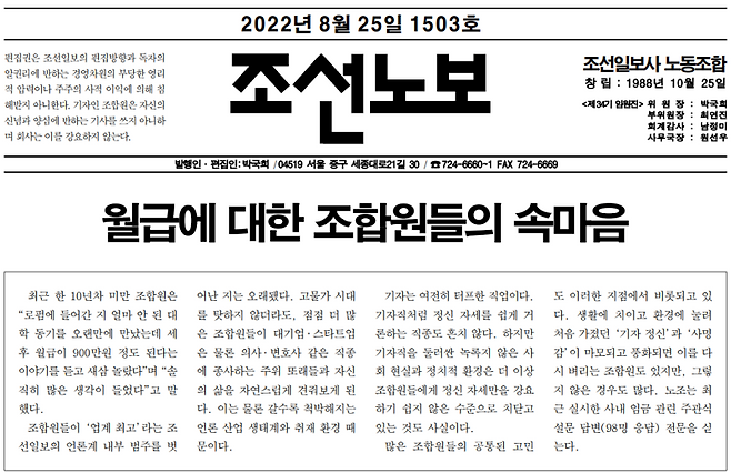 조선일보 노동조합 "정신 자세만 강요하기 쉽지 않아"