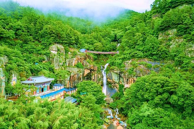 화창한 날보다 비 오는 날, 뿌연 물안개가 끼는 흐린 날일수록 절경을 연출한다. 산 능선을 타고 내려오는 폭포와 기암괴석, 허공에 걸린 출렁다리가 합쳐지면 다른 지역에서 보기 힘든 독특한 풍경이 완성된다.
