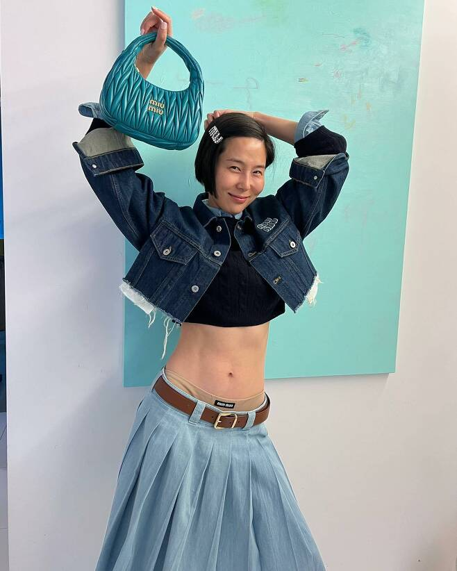 김나영, 데님스커트에 니트 소재 팬티와 매치