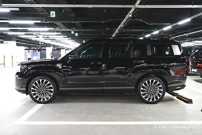 오히려 신형 싼타페가 낮고 와이드해 보이는데, 기존 모델에서 3세대 쏘렌토(UM)의 덩치가 컸지만 4세대 싼타페(TM) 대비 전고가 낮고 길어보였던 것과 유사한 차이다. 신형 싼타페는 상대적으로 A필러가 뒤로 이동한 형태로 후륜구동 기반 모델처럼 프로포션을 만들어냈다.