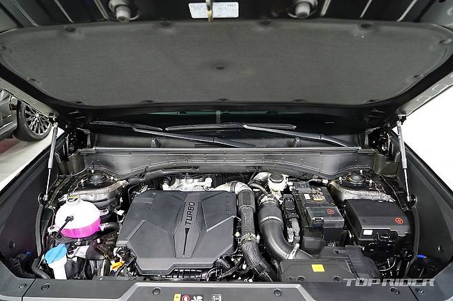 파워트레인은 2.5리터 4기통 가솔린 터보엔진과 8단 DCT 자동변속기가 조합돼 최고출력 281마력, 최대토크 43.0kgm를 발휘한다. 시승차는 2WD 6인승 사양으로 공차중량 1905kg, 국내 복합연비 10.0km/ℓ(도심 8.8, 고속 12.0), AWD는 복합 9.4km/ℓ(도심 8.2, 고속 11.3)다.