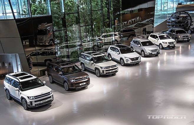 현대차 1세대 싼타페(SM)는 도심형 SUV를 표방하는 모노코크 기반 SUV로 2000년 처음 선보였다. 볼륨감 보디와 승용 감각의 구성으로 높은 인기를 얻었다. 이후 2005년 2세대(CM), 2012년 3세대(DM), 2018년 4세대(TM), 2023년 5세대(MX5)로 5.5년 주기로 진화했다.