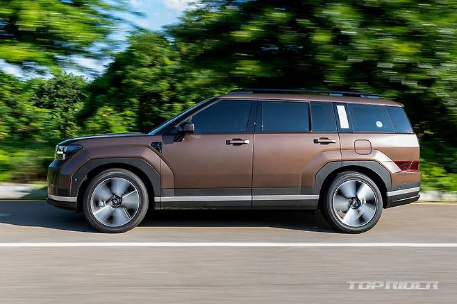 오히려 신형 싼타페가 낮고 와이드해 보이는데, 기존 모델에서 3세대 쏘렌토(UM)의 덩치가 컸지만 4세대 싼타페(TM) 대비 전고가 낮고 길어보였던 것과 유사한 차이다. 신형 싼타페는 상대적으로 A필러가 뒤로 이동한 형태로 후륜구동 기반 모델처럼 프로포션을 만들어냈다.