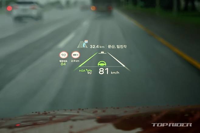 HDA2 적용 모델 기준 조향보조 기능도 강화됐다. 기존 버전이 곡선로가 시작된 이후 조향이 개입한다면, 이제는 곡선로 진입과 동시에 조향이 시작된다. 자유로 전 구간을 운전보조기능을 통해 주행할 수 있다. 정전식 스티어링 휠 그립 감지로 불필요한 조향이 필요 없다.