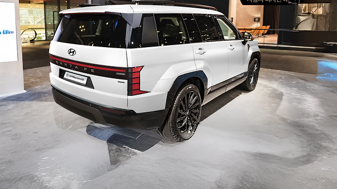 디테일도 놓치지 않았다. 방향지시등은 테일램프 내부로 통합됐고, 과하게 강조됐던 ‘SANTA FE’ 레터링은 크기를 줄여 하이그로시 패널 위에 정갈하게 배치됐다. 머플러 팁은 제거되고, 대신 범퍼에 입체감을 더해 무게중심이 높아 보이지 않도록 디자인됐다. 번호판 위치는 상단으로 이동해 전체 비율을 더 안정적으로 만들었다.