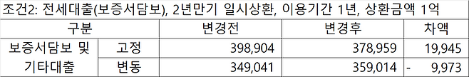 고정 이율 상품의 경우 변경 전에는 39만8904원을 지불해야 했다. 향후엔 37만8959원으로 내야 할 돈이 약 2만원 떨어진다.