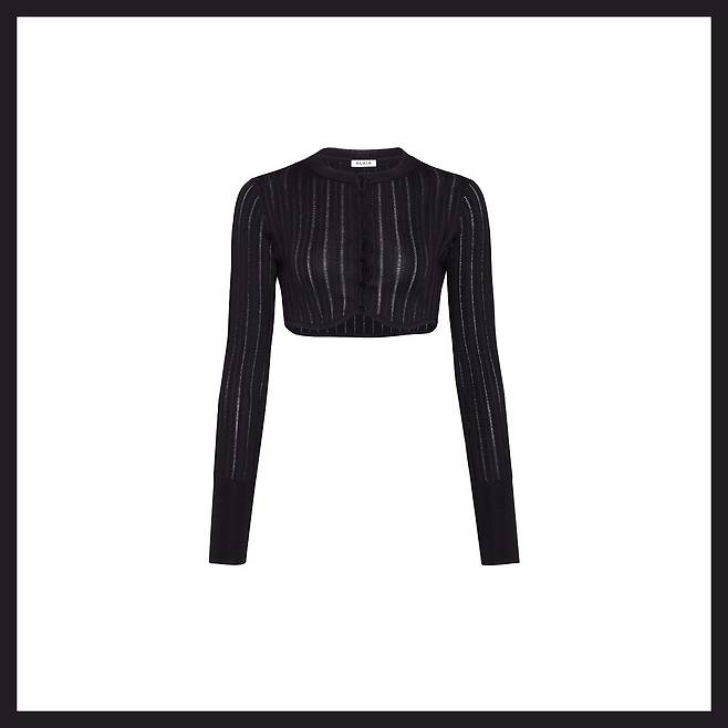 알라이아의 코튼 크리놀린 소재의 크롭트 카디건은 짧은 기장과 몸에 딱 붙는 실루엣, 블랙 컬러가 더해져 도회적인 매력을 배가합니다. 넉넉한 실루엣의 팬츠를 매치해 스트리트 스타일을 연출해도 좋고, 펜슬스커트와 함께 한다면 페미닌한 룩을 완성할 수 있죠. 하나만으로 다채로운 분위기를 자아내는 일당백 카디건입니다.
