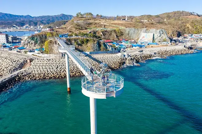 울진은 동해안에서도 비교적 상업화가 덜 되어, 한적하고 깨끗한 해안을 찾는 여행객들에게 인기가 높습니다. 그중 후포항 인근 등기산 공원에 조성된 스카이워크는 바다 위에 떠 있는 듯한 박진감을 줍니다. 투명 강화유리 바닥 아래로 넘실대는 파도와 절벽은 아찔하면서도 아름답고, 사진을 찍기에도 환상적인 배경이 됩니다.