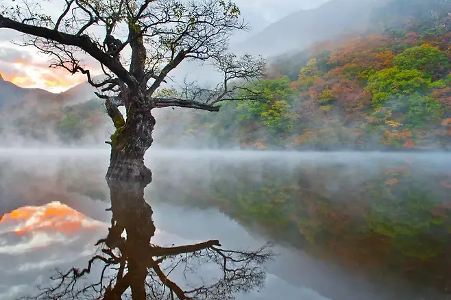 청송은 산악 지형과 계곡, 그리고 사계절 내내 맑은 공기로 유명한 지역입니다. 그중 주산지는 물 안에 뿌리를 내린 왕버들이 만들어내는 신비로운 풍경 덕분에 많은 사진가들의 성지로 떠오른 곳입니다. 잔잔한 수면 위에 어른거리는 나무 그림자와, 이른 아침에 피어오르는 물안개가 어우러져 몽환적인 장면을 연출합니다.