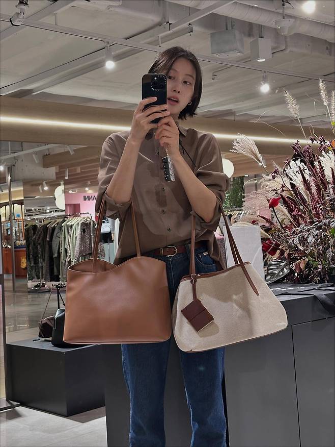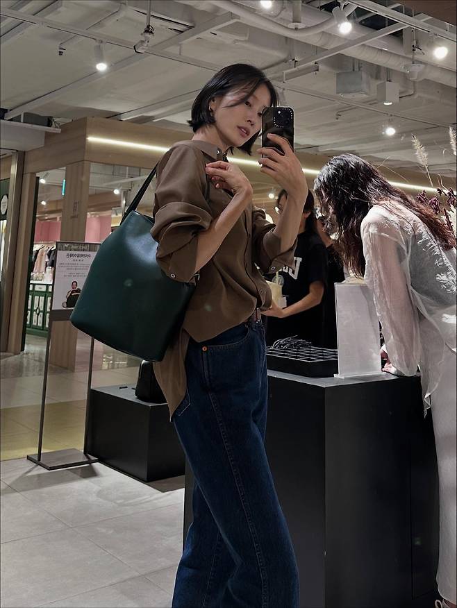 공개된 사진 속 이현이 씨는 갈색 셔츠에 청바지를 매치한 감각적인 스타일로 거울 셀카를 찍고 있는데, 군살 하나 없는 슬림한 실루엣과 독보적인 비율이 감탄을 자아내요.