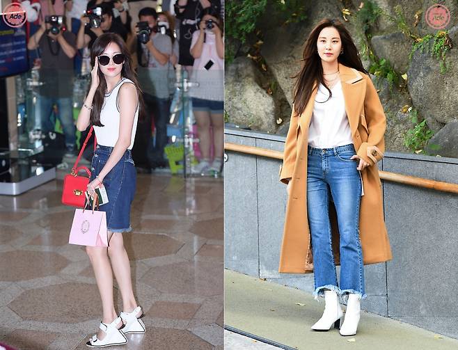 서현처럼 깔끔하게 넣어 입는 게 몸매를 S라인으로 더 매력적으로 만들어준다.