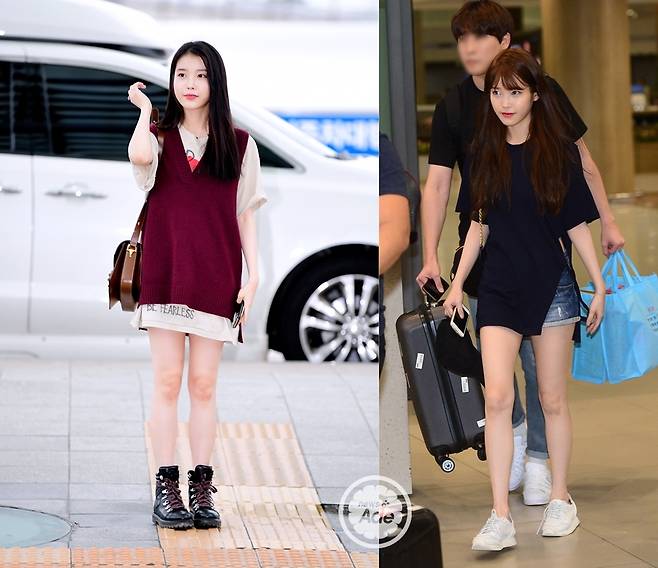 아이유는 오히려 티셔츠를 빼 입거나 오버핏을 입을 때 특유의 청순+귀욤 매력이 배가되는 걸 볼 수 있다.