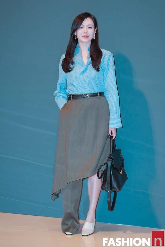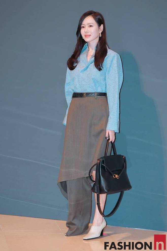배우 손예진이 바지 한쪽이 사라진 파격적인 원 레그 팬츠룩으로 시선을 강탈했다.