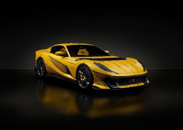 이 차량엔 매트한 지알로 트리스트라토(Giallo Tristrato) 컬러가 적용되었다. 812 컴페티치오네의 우아하고 스포티한 형태 및 가장 특징적인 디테일들은 매트한 네로 DS 스케치(검은색으로 마감 처리된 스케치)에 고스란히 담겨 있다.