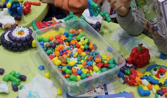 도너랜드의 퍼니콘은 옥수수 전분과 식용색소를 혼합하여 만들어진 창의력과 감각 능력 계발을 위한 안전한 교구예요. 전분의 특성상 물만으로 접착할 수 있어 풀을 사용할 필요 없이 손쉽게 사용할 수 있죠.