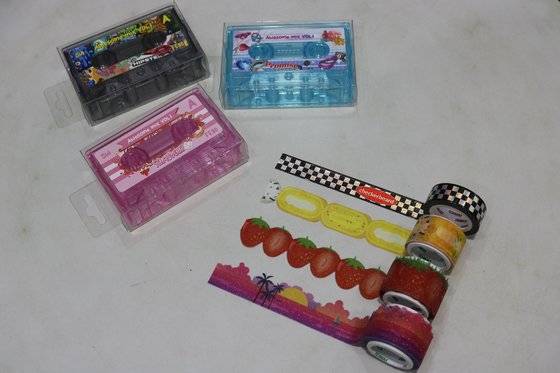 신우에서 소개한 다양한 마스킹테이프는 문구 덕후들의 발길을 잡았습니다. 특히 마스킹테이프 사용을 보다 편리하게 해주는 카세트테이프 디자인의 디스펜서에 눈을 뗄 수 없었는데요. 지금은 볼 수 없는 카세프테이프 모양이 특색 있고, 마스킹테이프를 바로 뽑아 쓸 수 있어 편리하죠. 무엇보다 케이스를 좋아하는 아이돌 사진으로 꾸민다면 나만의 굿즈 탄생!