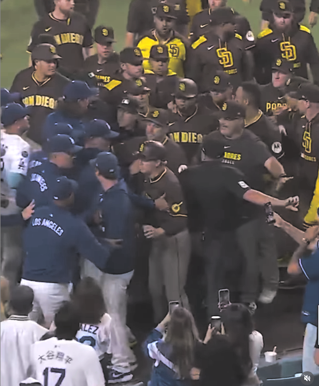 홈팀의 슈퍼스타도 피해자다. 곧바로 몇 분 뒤에 응징이 돌아왔다. SD의 로베르토 수아레스가 100마일짜리를 오타니의 옆구리에 꽂았다.