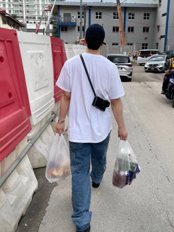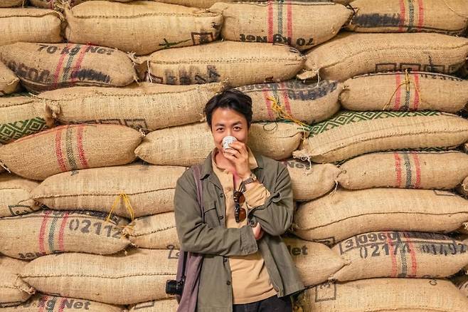 흰 티셔츠에 청바지를 입고 카메라를 어깨에 걸친 모습에서는, 요리사이자 일상을 기록하는 사람으로서의 면모도 엿볼 수 있습니다.