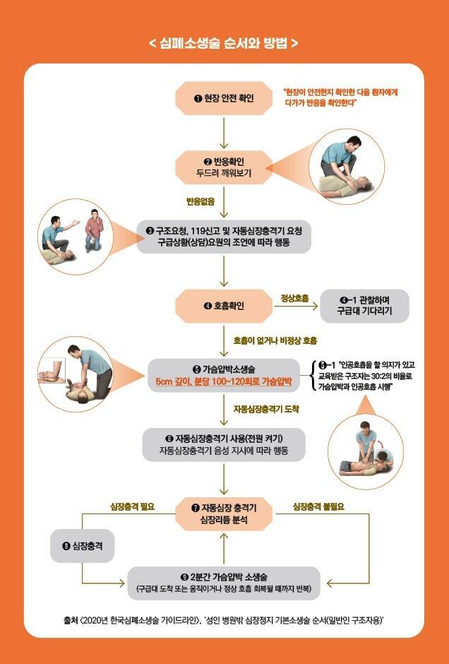 심장정지는 발생을 예측하고 어렵고 다양한 장소에서 발생할 수 있다. 이때 심폐소생술은 생명을 구하는 중요한 수단이 된다. 우리가 심폐소생술을 반드시 숙지해야 하는 이유다.