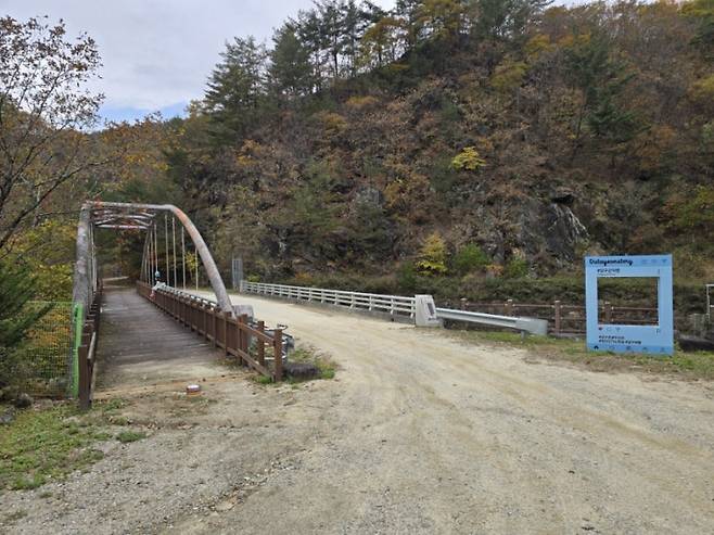 코스의 마지막 지점인 삼대교 통문은 DMZ 평화의 길 양구 노선의 끝을 알리는 장소입니다. 이곳은 민간인 출입이 가능한 구간의 최종 지점으로, 통문 너머로는 군사 작전 지역이 이어져 일반인은 접근할 수 없습니다.