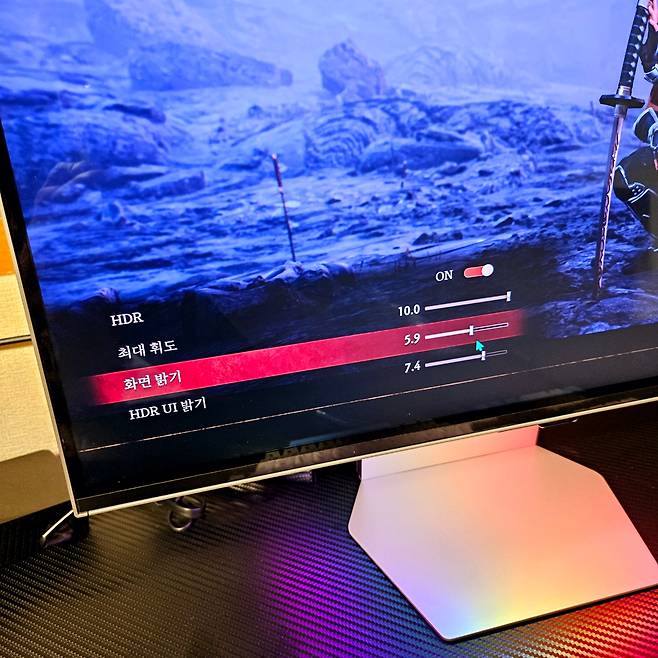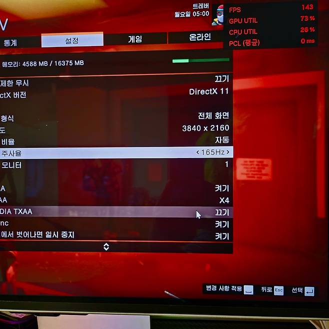 HDR과 165Hz 고주사율 적용해 게임을 플레 하는데 저 생동감 있게 플레이 했네요.