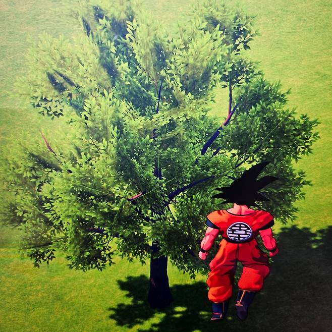 내가 컨트롤 하는 사물 (손오공)은 제 눈앞에 있는것처럼 3D로 보여지며 나무 같은 풍경 및 배경 입체물은 멀게 보여졌습니다