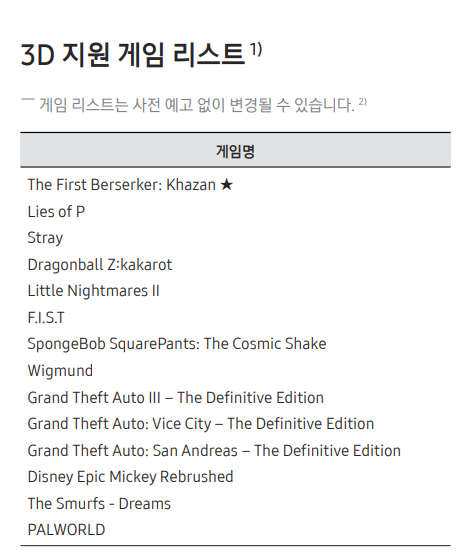 2025년 4월 기준 3D 지원 게임리스트입니다